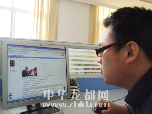 | 4月6日上午,一位網友在中華龍都網社區瀏覽帖子,了解孫自連事跡?! 。ㄆ萦?攝) | |