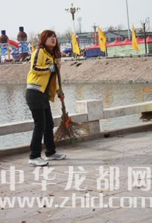 2010年4月2日,我在淮陽太昊陵廟會上,拍到了一個(gè)女孩與環(huán)衛(wèi)工人一起勞動的畫面,她不是專業(yè)的環(huán)衛(wèi)工人,但卻做起了太昊陵的“美容師”。