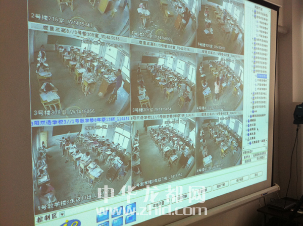 今年高考,我市全部使用視頻標準化考場。在二高視頻監考室,9名監考員正盯著監控屏幕上34個考場的考試情況。記者看到,通過監控屏幕,考場內考生、監考員的一舉一動都能映入眼簾。一名來自西華的監考員告訴記者,之前他并不知曉自己會被分配到哪個考場、哪個崗位監考,考試當天上午在考點抽簽后,才根據簽位進入視頻室監考。