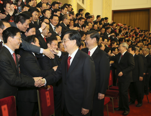 ????在熱烈的掌聲中,胡錦濤、習近平發表了重要講話。