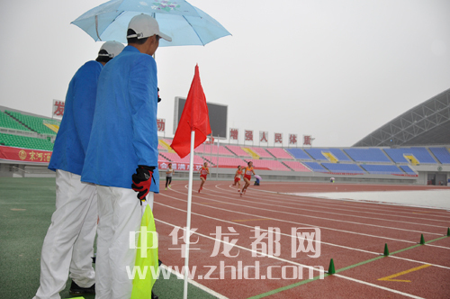 ??? 本網(wǎng)訊 11月22日下午,市二運會田徑賽場上徑賽項目冒雨進行。雨中,氣溫降至5攝氏度左右,觀眾也寥寥無幾。但是,我們的運動員和裁判仍然認(rèn)真的進行著比賽。