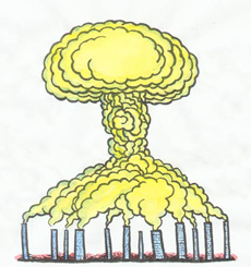 ??? 蘑菇云,戰爭和死亡的代名詞,人們說起它無不避若蛇蝎,然而可笑的是,人類對于空氣污染,全球變暖,這顆無形的原子彈卻是重視不足,任它漸漸發揮出威力。須知,戰爭只能毀滅一個國家或者民族,但是污染地球,導致的是就是全人類的滅亡。