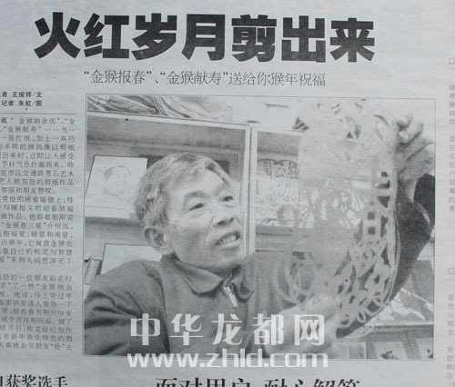 ????2003年底,周口晚報記者王俊祥在參加一個朋友的飯店開業時,偶然發現眾多禮品中有一幅貼在玻璃上的手工剪紙作品很是吸引眼球。通過打聽,得知這是熊克儉的作品。于是,王俊祥和攝影記者朱虹一起來到熊克儉家,在喜迎猴年之際,采寫了圖文并茂的消息《火紅歲月剪出來》。