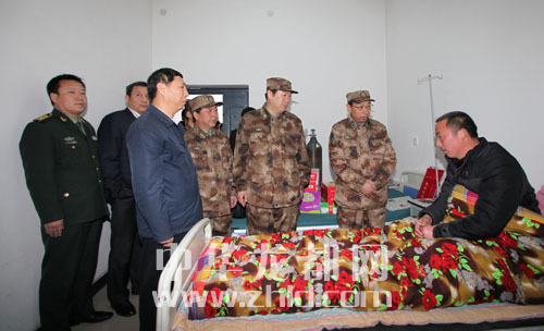 ????軍地領導來到鄭春光的家中,看望英雄的父母鄭慶兵、李玉霞,送上一份份溫暖、一份份真情、一份份感動。