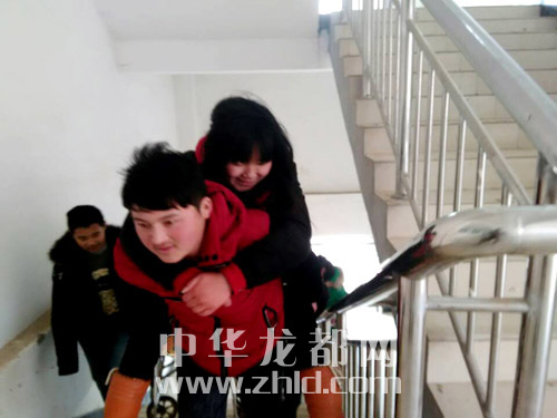 ????雷偉每隔幾天就背一次孔雪珂,這已成了他學(xué)校生活的一部分。“除了我背孔雪珂上下樓外,我們班其他26個(gè)男生也都背過(guò)她。我作為班長(zhǎng),理應(yīng)多做一些?!卑芽籽╃姘踩偷浇淌?,雷偉有點(diǎn)不好意思地說(shuō),“第一次背她,我有點(diǎn)兒害羞,但如今已經(jīng)習(xí)慣了?!?/p>
