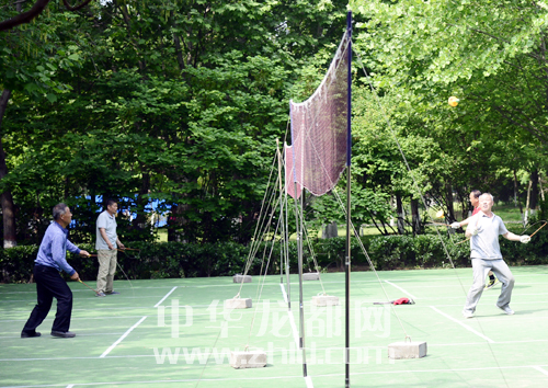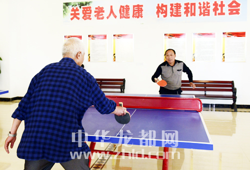 在融輝城老年人健身中心,老人們揮拍激戰。 (記者 沈湛 攝)