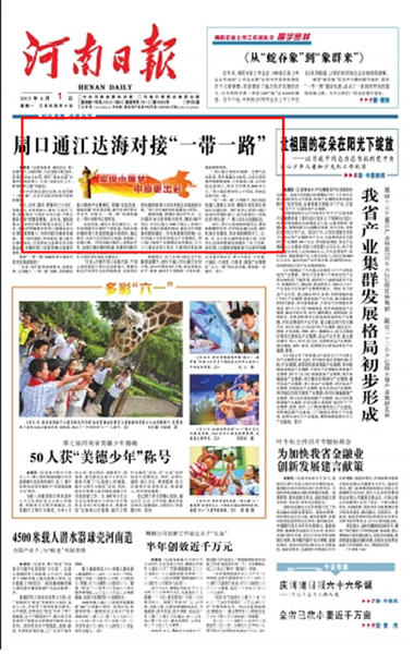 “當前,我們按照省委要求,發揮優勢、主動融入‘一帶一路’戰略,加快建設港口物流產業集聚區,明確‘東拓西連、建港促融’的發展思路,提升區域開放合作水平,實現與‘一帶一路’的深度融合。”周口市委書記徐光說。