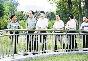 ????市委書記、市人大常委會主任、周口軍分區黨委第一書記徐光帶領市委、市人大、市政府、市政協和周口軍分區領導同志到全國八大國防教育主題公園之一——周口國防教育園參觀指導。(記者 沈湛 攝)