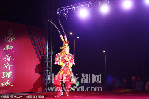 ????還記得小時(shí)候我們搬著小板凳到村頭看電影或聽?wèi)騿幔咳缃癜。r(nóng)民不再看電影聽?wèi)蛄耍情_始在村頭辦“村晚”啦。2月2日晚上,太康縣老冢鎮(zhèn)孟莊行政村舉辦了一臺(tái)猴年“村晚”。演出現(xiàn)場(chǎng)震天的鼓點(diǎn)和著嗩吶的節(jié)拍,熱鬧非凡。英俊的公子、羞怯的大家閨秀,神采奕奕的大爺大媽,一個(gè)個(gè)生動(dòng)的角色,一段段幽默詼諧的節(jié)目,吸引著附近數(shù)十個(gè)村的兩萬余名村民在此觀看。