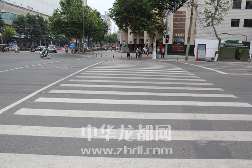 ????據了解,隨著七一路(六一路至中州大道段)的升級改造完成,該路段路面拓寬,通行非常暢通,還增加了很多人性化、都市化的設施:雙向4車道變成雙向9車道,路口的紅綠燈變成雙信號燈(圖一),取消了安全島,重新施劃了非機動車道和行人斑馬線(圖二),增加了左轉帶調頭標線等。