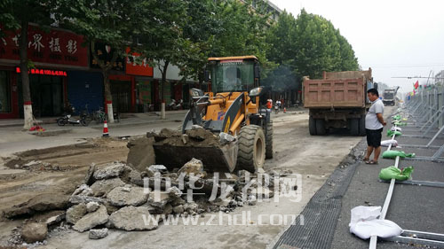 ????本報訊 (記者 李一 文/圖) 7月12日,記者在中心城區建設路改造工程施工現場看到,道路南側機械轟鳴,大型設備正在加緊作業(如圖)。