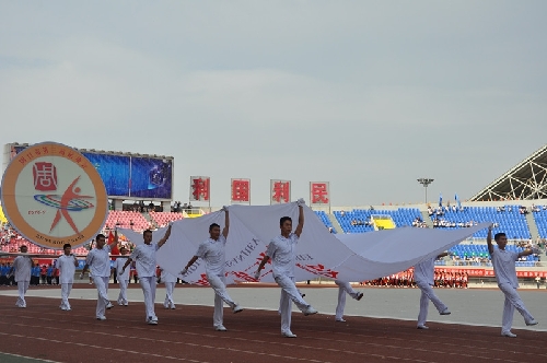 ????當日16時,國旗方陣、會旗方陣、彩旗隊、裁判員、運動員依次入場,一個個意氣風發的團隊引來現場觀眾陣陣掌聲和歡呼聲:周口川匯區代表團首先入場,他們步伐矯健,英姿勃發;市委辦公室代表團精神抖擻,意氣風發;市委宣傳部代表團邁著矯健的步伐走向主席臺……