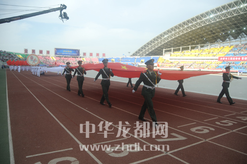 武警戰士護送國旗入場