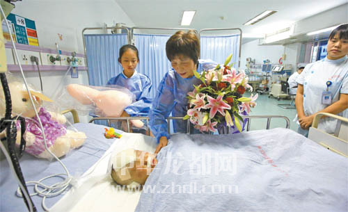 ????據(jù)齊女士介紹,童童目前病情基本穩(wěn)定。每天下午兩點(diǎn),她有一次進(jìn)入兒童重癥監(jiān)護(hù)室看望童童的機(jī)會。童童在事故中吸進(jìn)了灰塵,這些灰塵還沒有完全排出,目前無法進(jìn)食,只能靠輸營養(yǎng)液維持生命?!巴苈犜?,也很堅(jiān)強(qiáng)。一次,我進(jìn)兒童重癥監(jiān)護(hù)室看她,正趕上護(hù)士給她打針,童童怕疼哭了起來。我急忙告訴她,童童乖,要聽話。聽到這些,童童不哭了,十分配合治療?!饼R女士說。