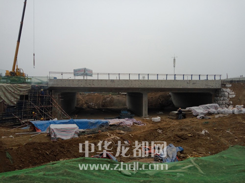 ????一橋,是互通立交的主體。整個立交橋凈高4.9米,有兩個橋洞,中間由寬1米的墻隔開,每個橋洞凈寬16米,設置單向雙車道和兩米寬的人行道。加上立交橋兩側各1米的墻寬,整個立交橋寬35米。同時,立交橋位置向北的周口大道兩側將增設寬2.5米的人行道。
