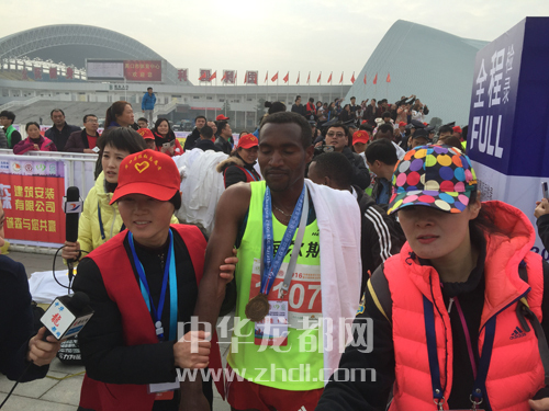 ????經過激烈角逐,21歲的小伙子李鴻浩以1小時12分56秒奪得了男子半程馬拉松第一名,張妮以1小時24分57秒奪得女子組冠軍。全程馬拉松男、女冠軍分別被來自埃塞爾比亞的兩位選手Bekele和Meskerm·Gutu·Tola以2小時16分40秒和2小時44分43秒奪得。