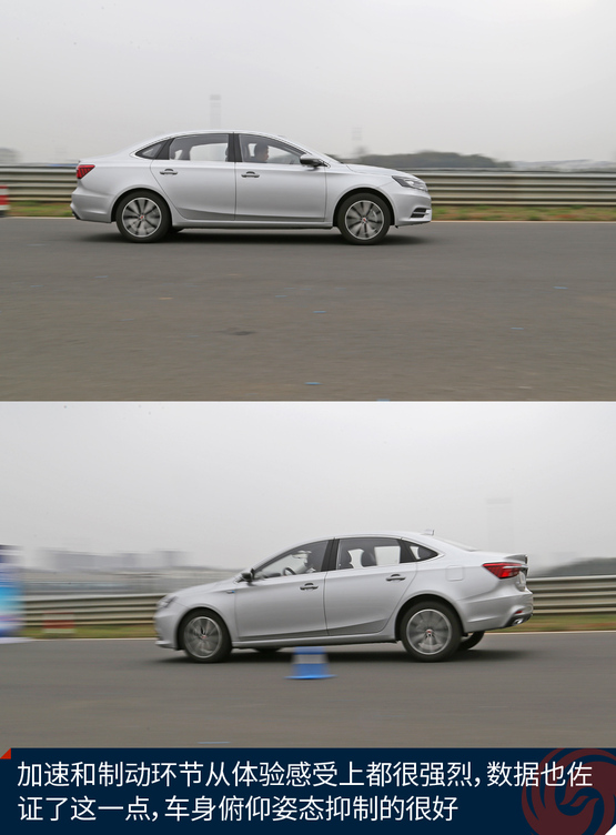 在動力方面,榮威i6搭載了上汽“藍芯”SGE 20T發動機,采用缸內中置直噴渦輪增壓、高效氣門配氣機構等國際領先技術,配合TST 7速雙離合變速器,榮威i6最大功率169馬力,比朗逸、軒逸和領動分別高出了59馬力、43馬力、39馬力。而實際測試中也證實了這一點,榮威i6在加速和剎車方面確實領先于競品車型。7.88秒的0-100km/h的加速成績確實讓人大吃一驚,榮威i6表現出了極高的運動化調教。剎車方面,榮威i6也表現相當出色,36.59米的剎車距離,可以跟一些性能車相提并論。300mm的通風剎車片功不可沒,整個制動過程有力平穩,車身懸掛對于點頭的抑制也很到位。