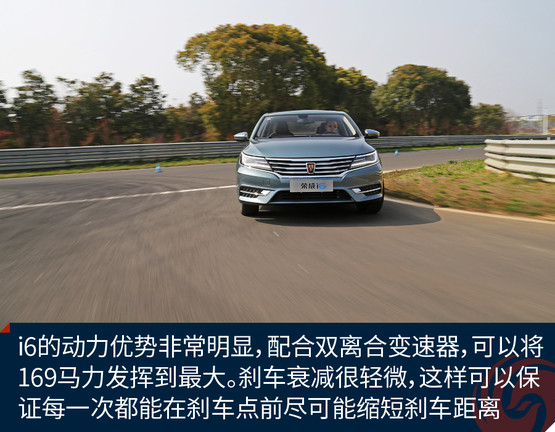 而在萬馳的賽道里,榮威i6的表現也非常不錯,首先動力的優勢非常明顯,配合雙離合變速器,可以將馬力的優勢發揮到最大。剎車衰減很輕微,這樣在賽道駕駛中可以保障每一次都能在剎車點前控制好車速過彎。油門的響應可以說比較靈敏,但是在出彎的急加速時略微有一點猶豫,有一點滯后。在彎道中,車輛能保持一個非常好的姿態,這種較運動的調教方式,可以使駕駛員在攻彎的時候更有信心。