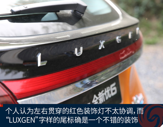 車身的側面依然是溜背的造型,這也是這臺車最大的特點。車尾的造型也基本沒有太大的變化,但是細看卻有著質一般的飛躍,車燈為全紅色,車標變成了“納智捷”的英文字母,牌照架周邊的質感明顯比老款好看了許多,不過個人對這個左右貫穿的紅色裝飾保留意見,認為沒有它或許更好。