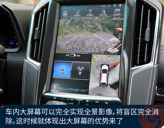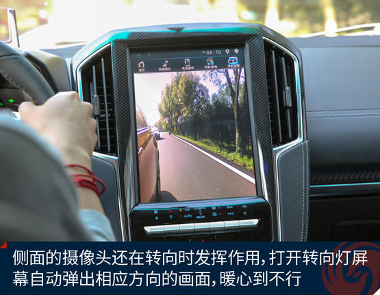 新車的內飾與老款相同,采用了環抱式太空艙的概念,方向盤,儀表盤等造型幾乎沒有變化,而最大的變化集中在中控屏及周邊區域,12英寸的大屏集成了多媒體系統與智能交互系統,行駛過程中大屏幕還可以展示Eagle View+環景影像系統和Side view+車側安全影像輔助系統。