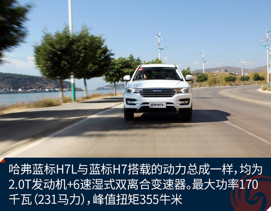 哈弗藍標H7L與藍標H7搭載的動力總成一樣,均為2.0T發動機+6速濕式雙離合變速器。最大功率170千瓦(231馬力),峰值扭矩355牛米。