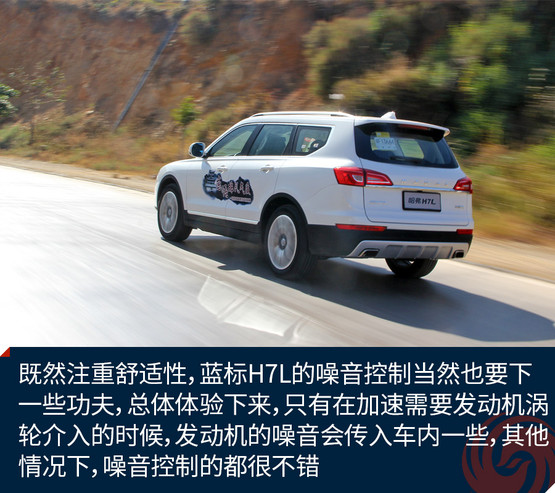 既然注重舒適性,藍標H7L的噪音控制當然也要下一些功夫,總體體驗下來,只有在加速需要發動機渦輪介入的時候,發動機的噪音會傳入車內一些,其他情況下,噪音控制的都很不錯。
