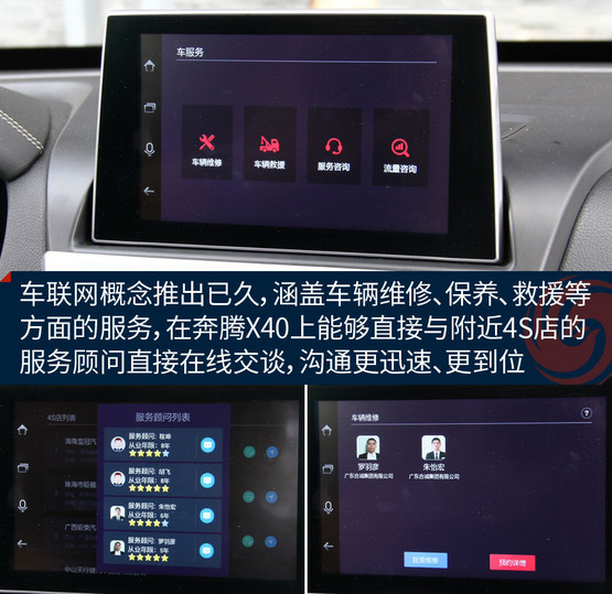 沒錯,你可能見過帶語音控制的功能,但還沒見過識別這么靠譜的;你可能見過能陪聊的,但還沒見過這么貧的;你可能見過支持裝APP的,但還沒見過集成社交平臺,能直接找車友、交朋友,甚至在地圖界面發彈幕的;你可能見過帶保養等服務的,但還沒見過能直接跟4S店的服務代表在線交談的......也許功能上還有需要完善的細節,但不可否認,奔騰X40在車聯網層面開辟了一個新的方向。