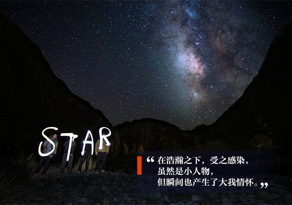 墨分五色,暗與黑之間也相隔甚遠(yuǎn),但你正可以在此時(shí),借助月光,找到一個(gè)好的觀測(cè)和拍攝角度。車這個(gè)伙伴,也在前照燈的照明下,趟過流水,踏上卵石,陪你一起等待即將而來的精彩。