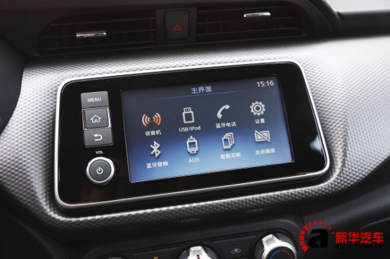 中控部分,整體布局相對規整,線條的設計也富有一定的層次感。多功能方向盤也采用了運動風格的平底設計。7英寸多媒體液晶屏集成了多媒體、藍牙通話及智能手機互聯等功能,屏幕的靈敏度也令人滿意。空調采用了手動的旋鈕操作,簡而易懂非常方便。低配車型仍使用的機械鑰匙點火,中高配車型則配備了一鍵啟動功能。