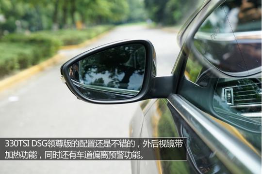 ????????測試的全新帕薩特330TSI DSG領尊版車型,外部配置也是不錯的,前后泊車雷達、倒車影像、外后視鏡加熱以及車道偏離預警等功能,都還是很實用的。
