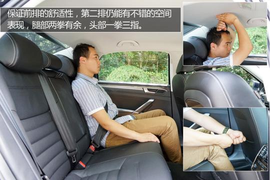 ????????全新帕薩特的內部乘坐空間還是挺大的,美中不足的是后排地板的凸起比較高,好在后排中間座位配有頭枕,而且座椅整體設計的比較寬大,乘坐舒適性還是有保證的。