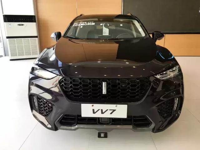 VV7車系下分VV7c和VV7s兩款車,VV7s細節設計上更為運動,配置更高一些,VV7c暫時不賣了,問銷售也不知道為何,展車也都是VV7s,白色是頂配,因為太火爆很難拍到周圍沒有人的時候。