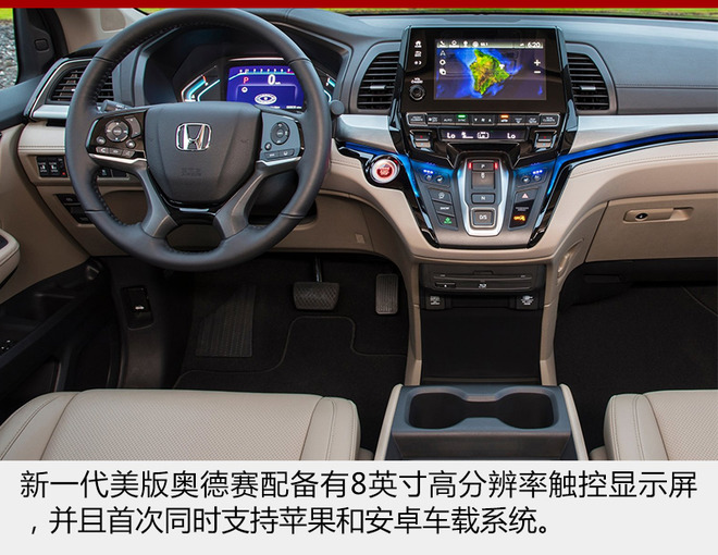 內飾方面,新一代美規奧德賽配備有8英寸高分辨率觸控顯示屏,并且首次同時支持蘋果和安卓車載系統,后排也安裝有10.2英寸液晶顯示屏,通過內置應用程序可使乘客看到實時出行進度。同時,新車的多媒體影音系統還支持4G LTE、WiFi和USB連接。此外,新車還配備有腳踢感應開啟尾門、安全超感系統、液晶儀表盤、魔術座椅以及手機無線充電板等。