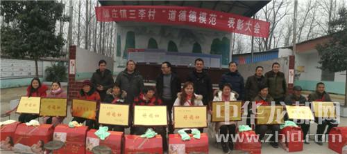 中華龍都網訊(記者 付永奇  通訊員 張其林)1月24日,寒風呼嘯、雪花飄飄,但在周口商水縣譚莊鎮三李村文化廣場上,卻是歡聲笑語、熱鬧非凡。該村第一屆“道德模范”表彰大會如期舉行,村里評選出的10名道德模范受到了隆重表彰。