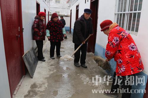 記者看到,一位老人正在用木棍敲打屋檐上垂下的“冰棍“,以免“冰棍”落下傷人,還有幾位老人在清掃剩下的一點(diǎn)點(diǎn)積雪,他們有說(shuō)有笑,很是熱鬧,場(chǎng)面煞是溫馨。