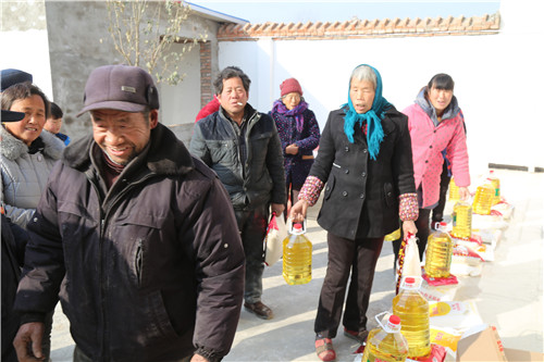 當日上午,雖然天氣寒冷,可葉莊行政村村室院里卻暖意融融。該村村主任熊茂禮正在把備好的年貨發放到49戶村民的手中。“非常感謝茂禮這么遠回老家看望我們這些困難戶,讓我們過上一個好年。”現年76歲的村民張多朗是個五保戶,接過熊茂禮送上的年貨連聲道謝。熊茂禮鼓勵困難戶一定要對生活充滿信心,樂觀地面對生活。同時,希望困難戶要保持良好心態,積極面對困難,自強自立,早日擺脫困境。