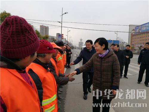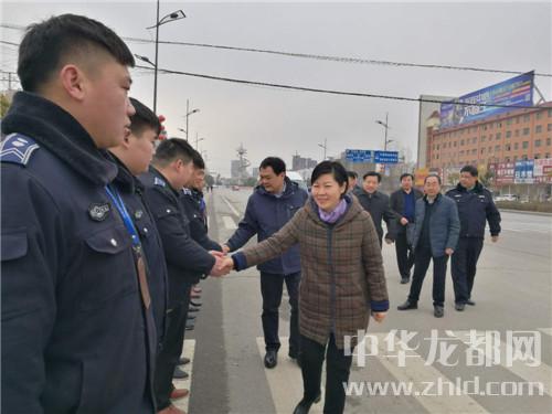 在鄲城縣城新華路與迎賓大道路口,羅文閣、李全林和一線值勤的環衛工人、城管隊員一一握手,深切關心環衛工人和城管隊員的冷暖?!翱词侄鄾?,要穿厚點兒呀。大年三十了,你們放棄和家人團圓吃餃子的機會,在為我們的縣城保潔,我們城市的清潔有賴于你們。你們辛苦了,給你們拜個年,祝你們身體健康。”羅文閣向環衛工人遞上慰問金時,樸實的話語、殷殷的關懷把黨的溫暖涌向環衛工人的心窩兒?!安恍量啵I導來看俺,俺里比吃餃子暖和?!杯h衛工人邊鼓掌邊道出了內心的激動。