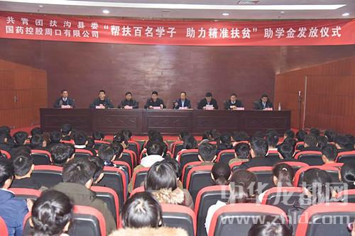 中華龍都網訊(周口報業全媒體記者 謝永靜 通訊員 鄭敏)2月28日,共青團扶溝縣委聯合國藥控股周口有限公司在吉鴻昌將軍紀念館舉行2018“幫扶百名學子,助力精準扶貧”助學金發放儀式??h委常委、副縣長張洪波,縣委常委、縣政府黨組成員段然,國藥控股周口有限公司總經理馬雨,縣扶貧辦主任謝廣魁,縣教體局局長郝金良,團縣委書記王琛等領導出席。