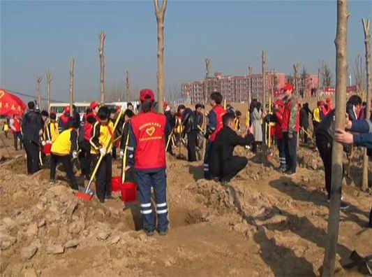 在大家的辛勤勞動下,現場栽種的樹苗在春風里亭亭玉立、錯落有致,為項城市增添了一道靚麗風景。