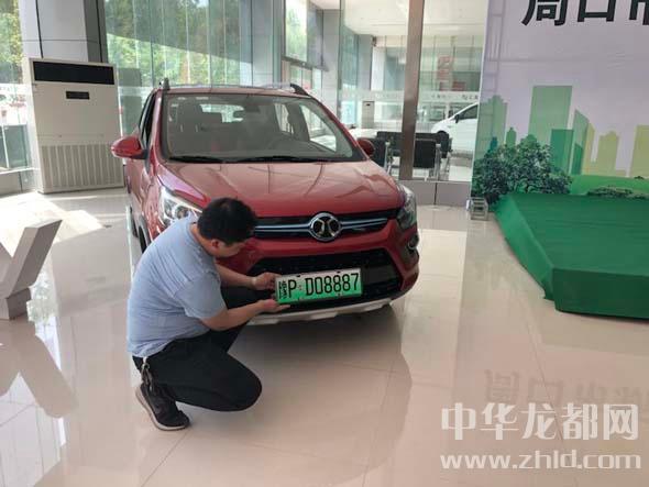 中華龍都網訊(周口報業全媒體記者 姬慧洋 陳永團 文/圖)4月10日上午10時,在市區太清路與昆侖路交叉口附近,我市新能源汽車號牌發放儀式啟動,在啟動儀式上周口市公安局交通管理支隊支隊長謝偉親手將“豫PD08887”這副新能源汽車號牌送到車主張磊的手中。據介紹,為了能夠盡早選到自己心儀的號牌,家住市區漢陽路附近的張磊一大早就趕到了位于建設大道與周口大道交叉口周口幼師北門附近的萬達便民服務站,在現場通過“50選1”的號牌選擇方式,喜獲自己心儀的號牌。