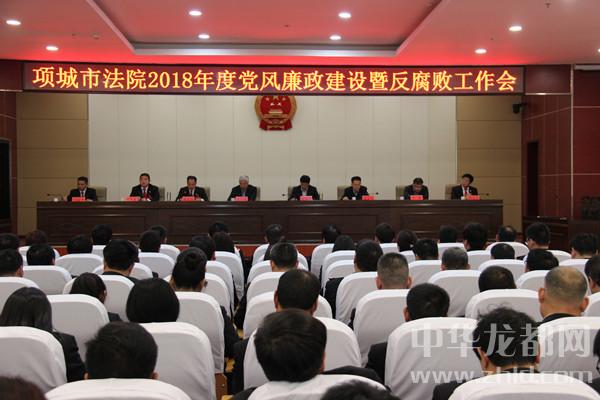 中華龍都網訊(周口報業全媒體記者姬慧洋 陳永團 通訊員 耿賀華)?4月12日下午,項城法院召2018年度開黨風廉政建設暨反腐敗工作會議。會議對2017年度黨風廉政建設和反腐敗工作進行了總結,對2018年度黨風廉政建設和反腐敗工作進行部署安排。項城市委常委、市紀委書記、市監察委員會主任劉海艇,市人大副主任高必民,市政協副主席王養嶺,市委政法委紀工委書記于灝出席了會議,項城法院黨組書記、院長張永波及在家班子成員、全院干警參加了會議。