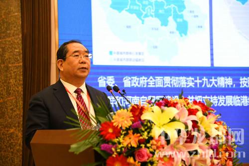 中華龍都網訊(周口報業全媒體記者 劉彥章 王泉林 李莉 王映 宋風)4月16日上午,由中國港口協會、河南省交通運輸廳、周口市人民政府共同主辦的“國家戰略新格局 交通發展新機遇——2018臨港經濟高峰論壇”在鄭州開幕。
