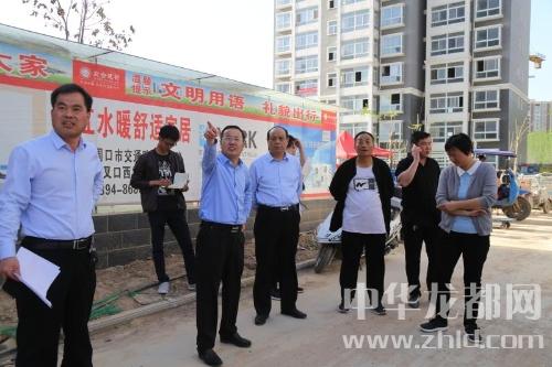 中華龍都網訊(周口報業全媒體記者 張勁松文/圖)4月19日下午,東新區管委會主任張建黨帶領相關鄉辦負責同志、區住建局、督查室、安置辦等區直相關部門負責人實地督導檢查全區棚戶區改造安置房建設工作進展情況。管委會副主任趙興昌,商務中心區副主任潘國華陪同檢查。
