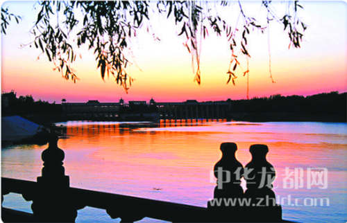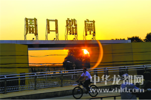 落日余暉下的沙潁河一片靜謐,掩映在夕陽(yáng)下的周口大閘,更是美輪美奐,讓人流連忘返。解朝中 攝