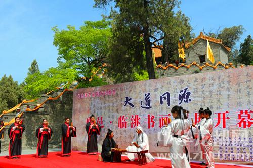 中華龍都網訊(周口報業全媒體記者 李瑞才/文 通訊員 陳興有/圖)5月4日上午,“大道同源”——鹿邑·臨洮書畫聯展活動在鹿邑縣明道宮景區開幕。此次活動由甘肅省臨洮縣人民政府和鹿邑縣人民政府共同舉辦,精選兩地137位書畫藝術家140余幅作品在鹿邑展出。鹿邑縣領導武衛東、劉銀、宋克言、王玉超和臨洮縣委常委、宣傳部長郭志萍等出席開幕式。