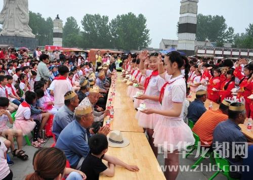 中華龍都網訊(周口報業全媒體記者 李瑞才 通訊員 胡洪濤 劉傳保/文圖)5月18日,鹿邑縣太清宮老子文化廣場內歡聲笑語、歌舞飛揚,處處洋溢著歡樂祥和氣氛,來自鹿邑縣太清宮鎮一所小學的500多名師生在這里為太清敬老院的40多位老人操辦集體生日,用精彩的演出恭祝他們生日快樂!