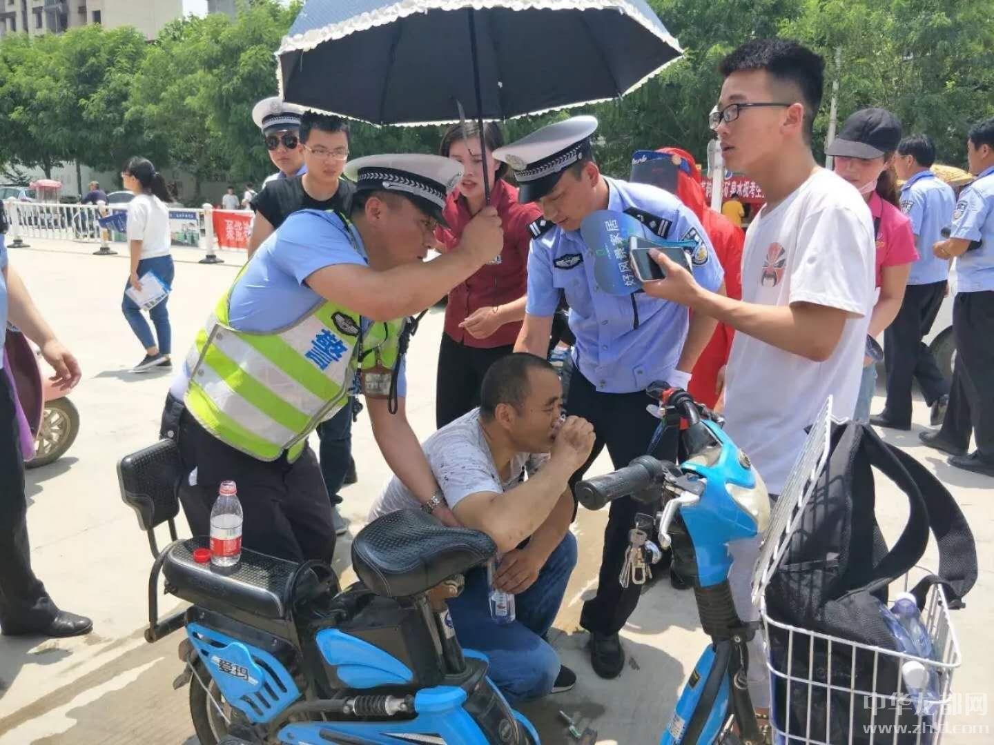 當日上午12時許,在沈丘縣一高大門口附近等待的一名考生家長癱坐在路邊,臉色蒼白,看起來身體極其不適。正在執勤的劉濤見狀,一邊上前對車流、人流進行疏導,避免圍觀群眾太多引發意外事故,一邊迅速聯系沈丘縣人民醫院120急救車迅速前來搶救。