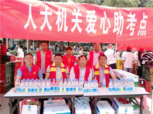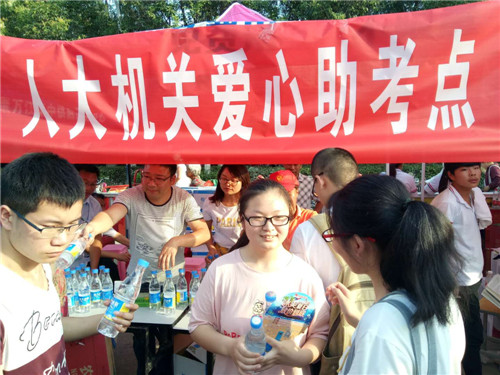 在“人大機關愛心助考點”,縣人大常委會副主任竇勝利說“授人玫瑰,手留余香。雖然我們沒有力量改變每一位考生的命運,但我們愿意通過點滴的善舉,溫暖每一位考生的心靈、傳遞愛的火種,同時向默默付出的考生家長及考場執勤工作人員致意。希望通過我們無私的相助,進一步展示太康文明形象、樹立行業新風、展現人大風采!”