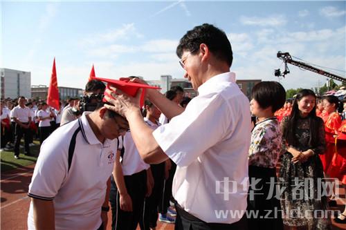 與會領導分別為成人學生代表佩戴了成人帽和成人紀念章,教師和家長代表也走進學生中間,為學生佩戴了成人帽和成人紀念章。
