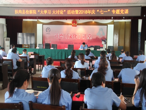 中華龍都網訊(周口報業全媒體記者 竇娜 通訊員 葛清華 趙宏偉)為迎接建黨97周年,繼承和發揚黨的優良傳統,發揮黨的核心引領作用,進一步增強黨組織的凝聚力和戰斗力,進一步提升檢察干警的黨性觀念和宗旨意識,激發檢察干警干事創業和爭先創優的熱情,近日,扶溝縣人民檢察院舉辦《不忘初心,牢記使命,做一名新時代合格的檢察干警》專題黨課。